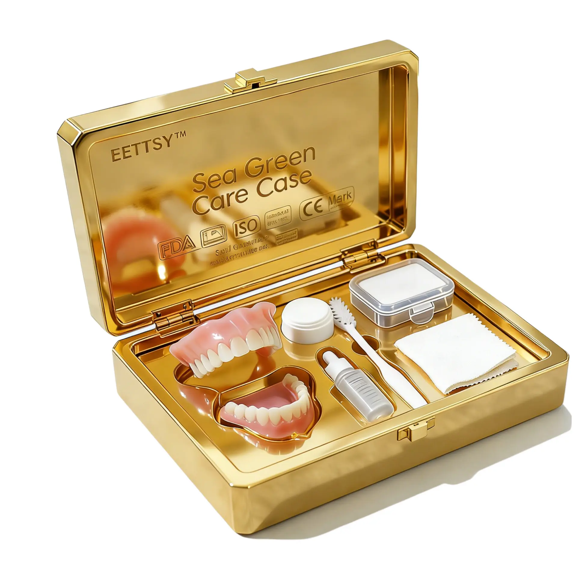Upon receiving your EETTSY® – Premium Denture, gently remove it from the packaging. Inspect the denture for any visible issues and ensure it is clean before first use.
